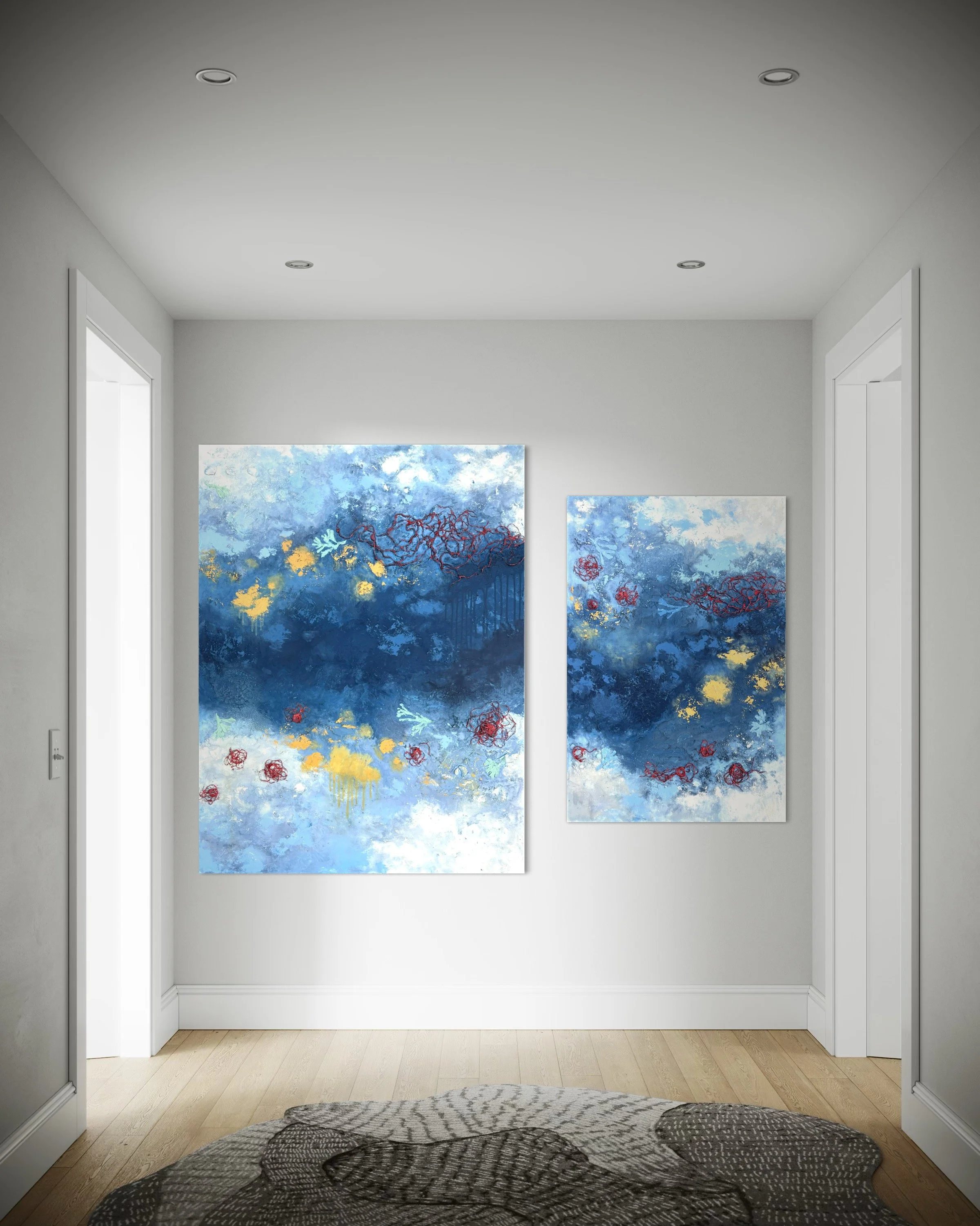 Created with acrylic paint, natural pigments, sand, discarded fishing rope, seashells and dried seaweed (all natural materials from Brittas Bay).